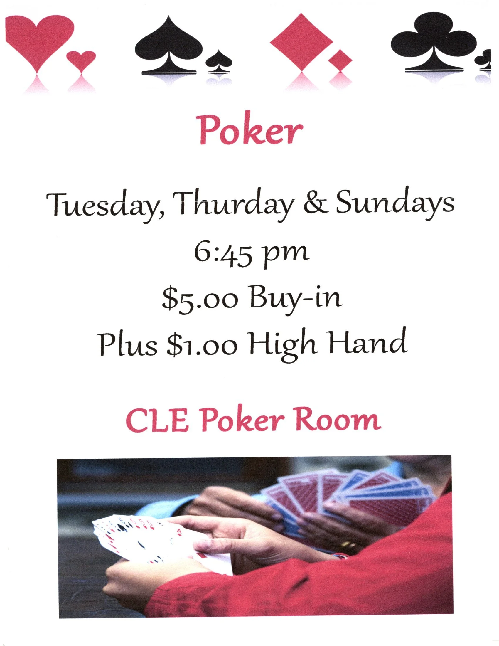Ladies & Gentlemen, join us Tuesday, Thursday & Sundays in the CLE Poker Room.
