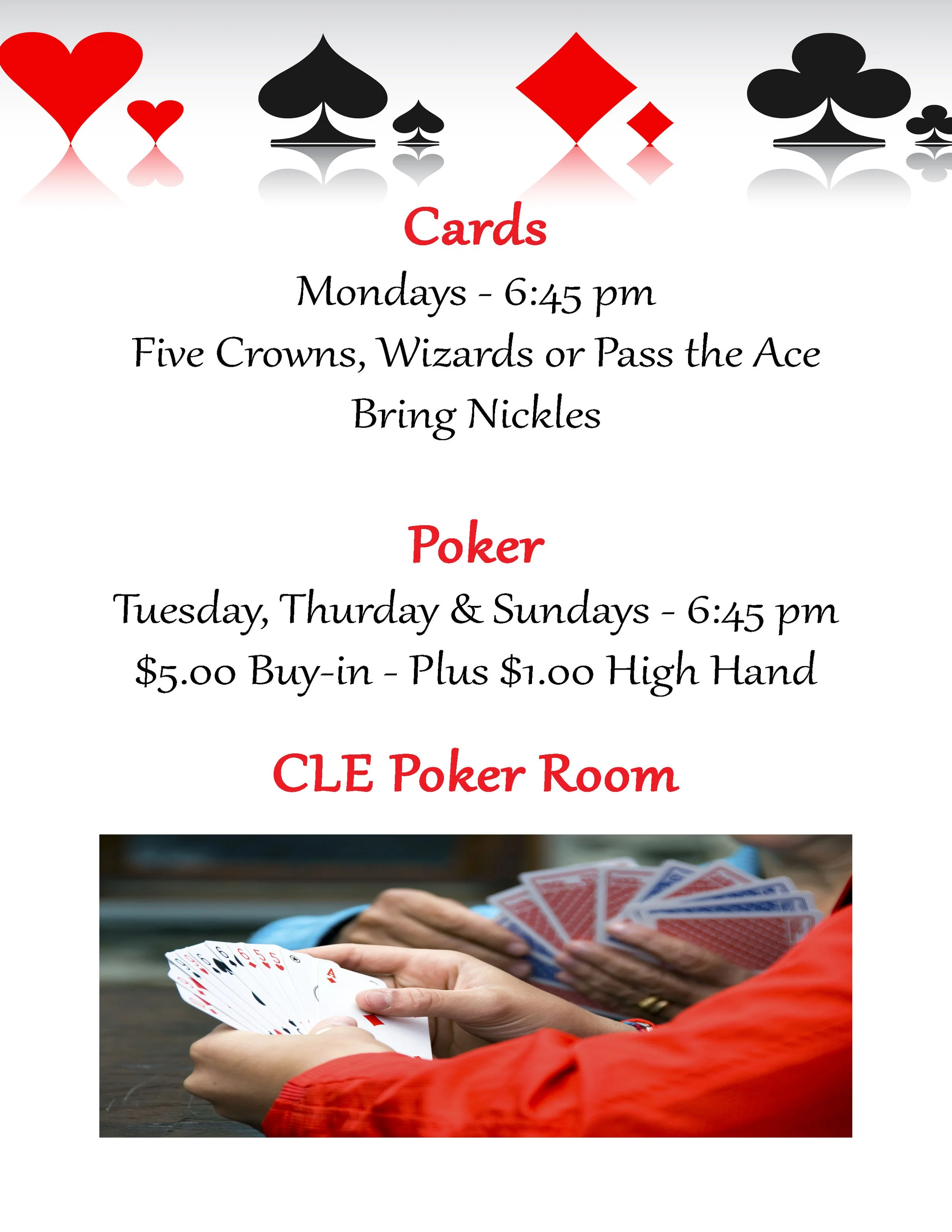 Ladies & Gentlemen, join us Monday nights in the Great Room Poker Room
